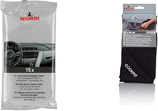 Nigrin 74152 Kunststoff-Pflege-Tücher, feuchte Tücher zur Reinigung und Pflege von Armaturenbrett, Türverkleidungen, 15 Stück & 71117 Microfasertuch Cockpit 40 x 40 cm
