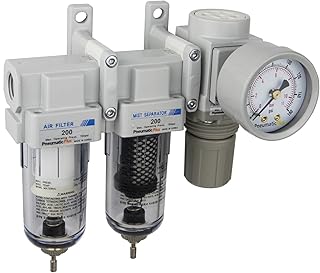 PneumaticPlus SAL2000M-N02B-MEP Miniature Compressed Air Lubricator 1/4" NPT - Metal Bowl, Bracket : Amazon.ca: Industrial & Scientific PneumaticPlus SAW2000M-N02BG-MEP Miniature Compressed Air Filter Regulator Combo Piggyback 1/4" NPT - Metal Bowl, Manual Drain, Bracket, Gauge Visit the PneumaticPlus Store 4.3 7 ratings 1/4" NPT Piggyback Style Filter Regulator Combo 10 Micron Filter Element, Flow Rate: 28 SCFM Max Supply Pressure: 250 PSI, Max Operating Pressure: 150 PSI