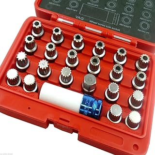 PLAYOCCAR Felgenschloss Knacker Radschloss-Entferner-Set Kompatibel mit VW Audi Volkswagen, 22-Teilige Diebstahlsicherung SchlüSsel Werkzeugsatz mit 12,7 Mm (1/2 Zoll) Steckdosenadapter