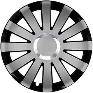 Autoteppich Stylers (Größe wählbar) 14 Zoll Radkappen/Radzierblenden Onyx Schwarz/Silber passend für Fast alle Fahrzeugtypen – universal