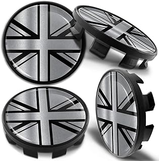 Biomar Labs 4 x 68mm Felgendeckel Nabenkappen Nabendeckel Kappen Radnabendeckel Nabendeckung Radkappen Kompatibel für Artikelnummer 36136783536 Alufelgen Deckel Silber UK Union Jack Flagge CB 30