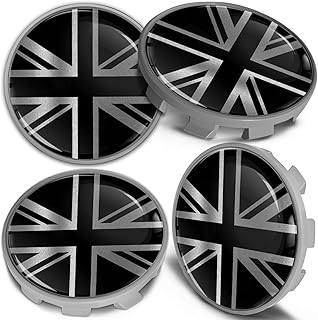 Biomar Labs 4 x 68mm Felgendeckel Nabenkappen Nabendeckel Kappen Radnabendeckel Nabendeckung Radkappen Kompatibel für Artikelnummer 36136783536 Alufelgen Deckel UK Union Jack Flagge Silber CBS 9